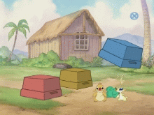 As you travel the space you can fall on spaces where there are either a Tiki, a Frog, a Tourist and Nani. Each one will or will not help to gain Experiment and are all done with an animation where different characters tell you what will happened next. Like with the Tiki space represent over 200 mystery cards, with the Frog they are 10 mini on-screen games to play and the Tourist represent 10 fun Physical Activities. The game is fun and full of surprise since you have unexpected animations that can come up has you spin the record. Plus your favorite characters from the movie like Lilo, Stitch, Nani, David, Jumba, Dr.Hamsterviel, Gantu and many Stitch's cousins, the Experiments wll be appearing at random time while you play.