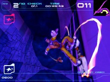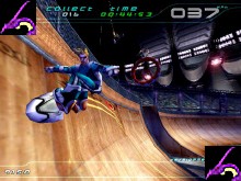 Faite différent truque Quelques fois, des obstacles peuvent être sur votre chemin comme des "Hurtling Trains" et des "Rocket Cars". Il y a des raccourcis et des chemins différents pour chaque piste. Vous pouvez en tout temps refaire les pistes pour améliorer votre meilleur temps et vos points. Lorsque que vous gagniez un "Sequential Series" de 16 course ou réussissez un "Stunt Challenges" donné par votre guide, vous déverrouillez des nouveaux mouvements. Il est possible de voir le "Replay" de chaque course. Le jeu contient un engin et des animation exceptionnel. Le contrôle de TrickStyle n'est pas mauvais, mais il est difficile, dans le sens qu'il faut être très précis par ce que le contrôle est sensible et que les mouvements du "Hover-Boards" sont retardataire pour nous donner l'impression qu'on flotte. C'est aussi difficile de s'agripper sur les rails en position couché. Le point fort du jeu, sont vraiment les graphiques avec des décors futuriste et l'originalité des paysages et des structures. TrickStyle est un jeu de course auquel il faut manier une planche particulière. Il plaira d'avantage aux gens qui font du "SkateBoard", du "SnowBoard" et du "Surf" |