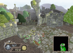 Strategy games have been mainstream for a while now, and everyone has come to accept the basic functions of Fog of War the big dark space (only seen by non-cheaters) that obscures any areas on the map your units haven't explored. As you move into the darkness, units uncover terrain and enemy units that may be hiding out in there. This has worked for many games in the past, and will continue to do so for most titles that are mostly top-down or isometric in their viewpoint. But, when you drop down into Goblin Commander's direct-control, you have a goblin's- eye-view of the world. Therefore, in a totally unexplored region of the game, you have a big black TV screen and a little visible corner of the world, all lit up with a few goblins in an un-fogged area, waving at you saying, "HEY, WE'RE OVER HERE! QUICK, DO SOMETHING BEFORE "THE NOTHING" MOVES IN AND DESTROYS US!"