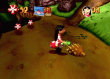 As for Stitch he can Bash, Spit Attack, Spin Attack, Roll Attack. While traveling they will pick up power ups and collectibles like Voodoo Spoon, Coffee, Drumsticks, Leaves, Pots, Bonus Pictures and all sorts of fruits. The Bonus Pictures can be viewed in the Lilo's Pictures Gallery.