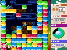 their classic arcade game Dig Dug. Mr. Driller is a brave little professional rock buster named Susumu that was called upon to drill through blocks that suddenly appeared Downtown and that are covering the street so no one can walk on them. Your job has Mr. Driller is to drill through the blocks in order to uncovered this Mystery.