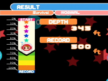 Time Attack is where you run against the clock where instead of looking for air to survive you look for clock through out the levels. If you finish with a score among the 10 best, you will be able to write and record your name. The Survival mode has 3 levels Normal to start at the surface, Hard to start at 5000 feet and Expert to start 10 000 feet. You have 1 life to get through everything and beat the previous record after you can replay your game to see how you did.