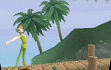![]() While you travel through out Never Land there is Feathers of different color to collect. White are worth 1 point, Blue 5 points and Red 10 points then you can go to the Indian Shop and buy items like Tips and Health Heart since your Life Gauge is represented by hearts. You will also find in Levels yellow flowers that you cut down that gives you Heart Health and Film Reel that allows you to watch a clip from the movie in the Indian Shop. In Levels you will have Hint Alert window that will appear in order to inform you that something important is coming close by. You will also found Keys and Switches to activate to open doors and gates and in other Levels you simply race against time. Peter Pan is an interesting character to control since he flies and can only walk on wood or he may get hurt so you have to fly always and there is enemies and object to beware of like pirates along the way that will try to stop you plus of course Captain Hook.