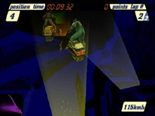 Race at night You also will have 15 different courses to race on. Sled Storm is mostly an arcade racing game with snowmobile and has a unrealistic gameplay meaning that while you race you earn points by running down rabbits and signs even snowmen which in reality you would never see that in a snowmobile race. The sound of the snowmobile sounds the same no matter which character you choose. You have third and first person view to choose from although quite fun to see the tracks up close when you do high jump you loose part of the view so it is harder to land. The tracks also are kind of short would be nice to have longer courses. The best thing you will find in this game is actually the movement of the racer you see from the third person. it is very interesting and fun to watch them jump and perform their tricks. The snowmobile are pretty well design but the background scenery is even better at some point you can see the mountains in the back which give you the feeling of really being surrounded by beautiful mountains. also the soundtrack was made by with songs of artist like Rob Zombie and Econoline Crush to get you into a competitive mood. Hopefully they will make a Sled Storm 2 for us to enjoy with some Ski-Doo or Polaris next time for us to try. So If you always wanted to drive a snowmobile or are fans of that sport well Sled Storm will surely entertain you on your PlayStation. |