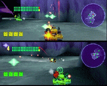 Play with your friend You can reallocate them if you whish on deferent corner and the more P-Brains you assign to the weapon systems the more accurately they will target enemies. A very interesting feature is added to this game Tiny has help of 5 Tiny Weeny Tanks that are exactly that miniature Tiny that helps him through out the game. Their functions differs depending on the numbers of P- Brains you have. No Brain they will just go find the nearest enemy and attempted to destroy them by exploding. 1 Brain they you go gathers that are left around nearby. 3 Brains and they will set themselves around Tiny in order to protect him. All through out the game you can see Tiny make deferent faces and comments. At one point he shoots down a cowboy after he starts signing "I shot the sheriff" and take his black cowboy hat and continue his missions with it. Like I said before this game will amuse you in a very original way. Sometimes when you run around after the robots the cameras will give you trouble to see. And more missions would of been welcome. Despite of that Tiny Tank is gear for you to have fun while shooting your enemy. The graphics are ok but the facial movement of Tiny is quite good. The music will put you also into the a nice ambiance. Tiny Tank is an original character to play has and quite amusing at some times if your are looking for something new and different to entertain yourself with Tiny might be what your looking for. |