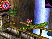 Tomba going for the door You also will be able to earn AP - Adventure Points - which will allow you to do special tasks like opening locked treasures. Tomba the main character unfortunately does not speak and the sound track can be repetitive at times. And also you can only play by yourself, no multiplayer. But the main thing that will catch your interest in this game is the originality of it. Like the fact that Tomba can wear different clothing like Superman and Batman does. The Squirrel suit will disguise Tomba as a Squirrel which permits him to fly openly in the air. You will be allowed to replay some levels by getting to a special feather in the game which will travel you in time. The gameplay also is quite fun because you need to perform some a sequence of tasks in order to accomplish small goals so you can progress. At one point there is a fire you need to put out so you must find the bucket, jump on a lever get the water put your squirrel suit climb on top of a ladder to get on top of the next building of the one on fire fly down give the water to the character there screaming in distress. He goes in with the bucket of water and says to you I need more, then you go again. It will make you feel like real a hero. After the fire is put out you will receive a special item that will allow you to pass other missions. Although you can only play by yourself, Tomba! 2 The Evil Swine Return is a very original title that will give you many hours of fun. |