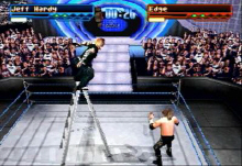 nice picture of a wrestler with her or his signature to look at. Strangely some stats are missing like Stephanie's and Lita's. Also when you throw someone to the post she or he will always fall the same way like as if Rikishi would perform is finishing move on. The crowd sounds is good but you have no announcers Jim and Jerry are missing. The camera views are fine but it will not change angles often . When you are playing the season mode all the matches are display for that night and you always have to select each of them and decide if you want to play it yourself or have the cpu do it for you. This gets very annoying after a while you do not have the option of having it all done at once and move to the next night like you can do in football games. The pace of the game is very fast and entertaining it makes you feel the atmosphere quite well. The collections of moves you can do adds a lot of value to the game. You can perform the moves of the wrestlers impressively quite well like they do during a match also the better you play the more moves are unlock for you to access as you progress in the match. When you get to the finishing move you will see Finishing moves scroll on the screen.