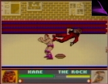 "Three words: Flying Air Kick" Biographies: You see the picture and information on the 20 wrestlers, such as their name, height, weight, and have their trademark 'Finisher' like The Stone Cold Stunner from Steve Austin. The booklet that you receive with the game at the end has more information and you can see pictures of their finishing move. WWF Attitude would of been more fun to play with more than just one player, because all the wrestlers seem to fight the same. It gets boring after a while. The sound does not help either, it doesn't fit this type of game. It sounds more like a Mario gazme then a Wrestling game. The controls are simple, nothing spectacular though. Since it has 20 wrestlers to choose from and all the options mentioned before, if you really like wrestling, WWF Attitude will entertain you until later this year, when Acclaim brings us a better Game Boy wrestling game. |
