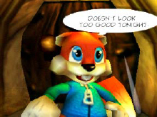 The unique gameplay is what makes this game interesting not only it has all the feature I mention before but you can also see different facial expression on Conkers face like closing his eyes and if you leave him alone and do not do nothing you will see him entertain himself by playing a yoyo, read a journal, drink even play his Game Boy Color talk to you like saying are you dead I think is dead took 4 minutes before I could see the same behavior twice. Rareware really did an outstanding job by trying this new innovative gameplay which makes me wonder what surprise they have in store for us when the Gamecube comes on the market this fall. The soundtrack is also very good. You can hear the sound effect quite well and the music will change depending on the story. Although this title is not for everyone Conker's Bad Fur Day is an original and unique game that has new ground breaking features for you to experiment and enjoy. |