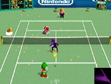 Venez rejoindre la famille Nintendo sur le court de tennis! Développé par Camelot et publié par Nintendo, Mario Tennis vous donnera l'occasion de jouer à un jeu de tennis original. Mario Tennis donne un choix de 14 personnages de Nintendo. Mario, Luigi, Peach, Baby Mario, Yoshi, Donkey Kong, Paratroopa, Daisy, Toad, Bowser, Waluigi, Birdo et Boo. 2 autres sont cachés dans le jeu, Donkey Kong-Li et Shy Guy. Il est même possible d'être gaucher pour ceux qui le désir. On peut choisir entre 4 niveaux de difficulté et les 4 types de Court de tennis. Les modes de jeu change d'après le nombre de joueurs, mais voici les principaux. Exhibition pour faire juste une partie et Tournament.