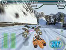 " You can be a Skywalker" The vehicules are very specials. They are like two horse chariots. You are pull by two big reactors. You can buy, with your Truguts, some stuff to upgrade your vehicules after you win a race. Unfortunatly for the fans of Star Wars, the goal of the game is not to rescue the univers. Its only a good game of racing. The maniacs of Star Wars will at least be able to recognise some elements in the games.This game was build to catch a bigger part of the market, as the lover of speed. But it is a racing game with hyper-speed, where you can go up to 600 mph and where the control is perfect, you can turn your vehicules on him self to pass in somes crevices.The 3D graphics on N64 are fast and unseen before. This game will certainly have a lot of success like the movie. Its a game to have if you love Star Wars or simply the speed mix with a graphical #1 quality and an excellent control. |