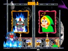 Develon is winning Your main characters are Bub, Bob, Alkanet, Marino, Kurol, Tamtam, Cleon, Gigant, Develon, Bramb and G. More characters can be unlocked in the Win Contest mode also. Each speak, move and reacts when they win or lose. You have 5 game mode that you can play. The Puzzle is the main mode where it revolve around the story of sealing the mystical cards called The Arcana and is divided in Arcade where you need the clear 5 puzzles, Story is where you move on within the story and the collection mode allows you to play a collection of over the best 200 puzzles ever created. Player vs Computer and Player vs Player is divided in 2 different games, Story or Win contest. With Story you can read and follow it as you go. The Win Contest is where you can unlocked secret characters like Monsta, Maita Woolen and Packy. Once unlocked you can play with them.