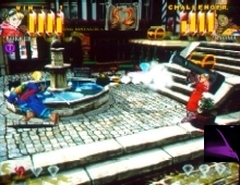 Power Stone is Capcom's first 3-D, run anywhere, grab almost anything, fighter. This isn't one of Capcom's run of the mill fighting games, Power Stone takes Capcom in a whole new direction in this Arcade-Perfect port over to the Sega Dreamcast. In a world of upcoming 3-D fighters, Capcom has shown on the Sega Dreamcast, they can keep up. Power Stone has you engage in battle with 8 new fighters called: Falcon, Ryoma, Wang Tang, Jack, Gunrock, Galuda, Ayame, Rouge. That is not including hidden fighters in several fully interactive locations. Along with items for usage on the battle ground, the battleground itself can be a weapon as you lure your opponent into a spinning fan or swinging anchor. The goal of Power Stone is to collect all three Power Stones which have the ability to make any wish come true, and in battle, turn you into a super powered alter ego of your chosen warrior which will activate special moves called "power drive" and "power fusion" . The battle begins with each fighter housing a Power Stone. You must knock the stone out of your opponent, pick it up, and obtain all three stones to reach unbelievable power. It seems simple, but the computer's AI is programmed to run after those Power Stones, so if you see a Power Stone off somewhere in the arena, the Computer Controlled Opponent will most likely ditch you for the stone. The fighting engine is pretty adolescent; anyone can pick up this game and begin using combos. Though, to truly master this game you have to learn to fight along with your surroundings. If there's a Pole, use it to swing into your opponent.