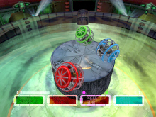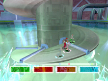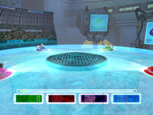 In the Waterfront, you go down to the docks to race jet boats or grab things without falling into the water. Depending which game you are playing they will be power-ups that will appear randomly in different locations to help you like the Lightning Bolt, Hammer, Shield and a Question Mark. although the character are very litlle when you play the minigames are well design. It is also a game where you can play with young gamers since the gameplay is easy to understand and full of fast pace action that will capture their interest Fusion Frenzy is a game that focus of fun and fast action that you can enjoy with your family and friend for long time.