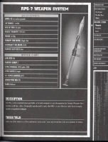 Each weapons are explain with a description, specifications, damage charts, a picture and a Tough Talk section where you learn extra information on the weapon. Concerning the Grenades you will learn the The Detonator Time of each of them combine with a Description and a picture. There are also Descriptions of each items you will used during the game. There is a detail Walkthrough of each mission of the 13 missions. At the beginning of each mission there is a Description of the First objective, the others will be explain later as you read and get to it. There are also explanations on who and what are your enemies plus what new Weapons will be available in the mission.