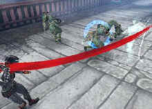 But before he can go anywhere Hotsuma will have many enemies to defeat. Hotsuma has the ability to Walk, Run, Jump, Wall Run and lock on a specific enemy. Plus he can Stealth Dash where he can move from one place to the other in a flash, it is quite fun to see actually. To kill his enemy Hotsuma carries a sword called Akujiki. He also has other weapons like Ninja Daggers called Shuriken that he can throw or paralyze his enemy with. Hotsuma can also use ninja magic called Ninjutsu. There are 3 types Ka' en, Kamaitachi and Raijin, each are very powerful and will inflict a lot of damage but they have limited usage.