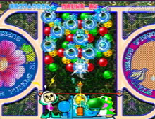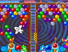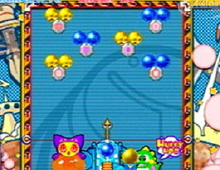 Compare to the Dreamcast one you do not have a story mode and you can not create your own puzzle. Unfortunately characters do not talk and their animations are less spectacular. The game does not slow down even when their is a lot of chain reaction while you hit the bubbles but the movement of the pointer is too slow specially when it is a difficult stage where time is the essence. They remove the big points so you can see better what you are doing. The background graphics are animated and nicely done specially the constellation one. They also added different shape of the arena you play in plus some obstacle like squares and the Belt conveyor is a good idea it really will make you think on how you are aiming.