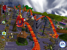 Bullfrog took what was the best in SimTheme Park from the PC and PlayStation version and made a great 3D Roller Coaster simulation for you to enjoy on the PlayStation 2. In Theme Park Roller Coaster you will be the owner of a park that you build and manage from the ground up. You start with one park then has you succeed you can open more parks. They are 8 environments spread on 4 different Theme; The lost World, Space World, Halloween World and Wonder World. Each of them are unique and they have their own rides and coasters.