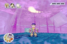 Controlling Vexx can be a bit tricky at time since the camera is not that good sometimes objects will mask Vexx totally so it does affect also your jumping. The graphics are nice and the gameplay is average but it has a cool feature where you can actually change the time of day in order to fight new enemies. It is also unfortunate that Vexx does not talk that much since the soundtrack uses the Dolby Surround. But Vexx has many moves where he can perform combos he can actually stand up on a pole with one feet that is interesting to see. Vexx is a new character from Acclaim that offers nice features but still needs some work in order to stands out from other platform games. |