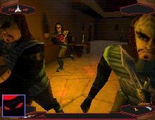 graphics engine and the first Star Trek FPS. You assume the role of a lowly Klingon who is trying to become one of the few ,the grumpy, the Honor Guard. The game start with you in a holo-deck simulation but quickly turns into a quest to save the empire from evil forces. It seems that someone has made a grab for power in the Empire and it's up to you to make it right. So get ready to face some truly grumpy foes. This is the first Star Trek FPS and it captures the Star Trek universe very well. At least the Klingon side of things. Some other creatures from the Star Trek universe pop up now and then too. You have a good choice of weapons to help you along in your quest and they are all pure Klingon. From the D'k Tahg and Bat'leth to the more potent Particle Dispersal Cannon. The weapons are interesting and very star treky. The hand to hand weapons are more powerful than you might think and take a bit of skill to use properly. Weapon balance seems good with all weapons having a alternate fire mode. The D'k Tahg (knife) can be thrown for instance, this adds a nice twist to those stuck without a good weapon in multiplayer deathmatch. The levels are big and sometimes complex but they lack polish and flair. They seem to be lacking the little details that some other games offer in level design. Some of the levels are not very pretty but all are playable. The multiplayer levels are simple and a bit small but do the job.