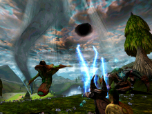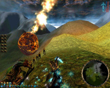 And you have your Spell Tabs where you will find 3 kinds of Spells Tabs. The to create creature tab, the structure tab and the Combat and healing spell tab. While you play if you are not sure of what was said or missed part of it, you can select the Speech History so you can read what was said. The same goes with the Mission Objectives if you are not clear or forgot what you have to do. In the Scenario mode Shiny as included a powerful map editor called Scapex where you can create single and multiplayer levels. Everything can be created from scratch creatures, structures, flowers and snow so you can create many world making your gameplay infinite. You can even submit your map to Interplay or download some from other Sacrifice's players. In the Multiplayer mode you have 13 different sort of wizards that you can select and name it the way you want. You also can select which map you want to play and your game type. Each game type as their own gameplay and objective you have four; Skirmish, slaughter, Soul Harvest and Domination. Some of you might find this game quite complex at first since you have to summon creature and order your troops as one or more unit that is why the Tutorial is where you should start. You can only play with a third person view it would of been interesting to be able to see and play as a first person view since to graphics are so well done. Well this is what will catch your eye first is the beauty of this game not only the worlds and the creatures are well design but they all are kind of alive always moving or animated kind of which gives you an alive atmosphere.