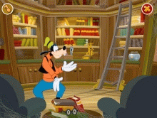 Like Goofy can start looking at books then all the books will falls from the shelf because of the Friendly Ghost. Then The Friendly Ghost will ask your child to help him put the books back together by looking at the letter or letters on the spine of the book and place it in an alphabetical order. After all the books are rightly placed the Ghost will tell your child that since she or he made such a good job that he will give you something special then an animation comes and Goofy finds a Key in a book. In the haunted library, your child will learn Categorization and Sorting. An other key will be earn when your child will help the Friendly Ghost fix a water link in the basement because of broken pipes. This one has a time limit because water is dripping of the pipe into a bucket. Your child will be given different shape of pipes that she or he will have to place in order to repair the pipes. In the basement your child will learn Analytical and Critical Thinking.