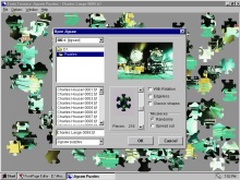 2 different board (2 windows) and you can switch from one to the other simply by pressing one touch. You can also see the whole picture also by pressing only one touch and to switch the pieces from one board to an other, you need a click, that's all... The graphics are good, it's sure that it is not a game that require high quality graphics, but if the resolution could be improved a little bit, it can be useful by moment. Well, it is good enough for that game. The sound doesn't add that much to the game, but they use it in a good way. In fact, when two pieces fits together, a sound like the one that happens when two wagon hooks together is heard. In the installation of the game, a little application that lets you create your own puzzle (with a picture on your hard drive) is installed. It's a very easy-to-use application that give a must to this game. It's this application that, for myself, makes the most of the interest because it lets you create your own puzzle right from your imagination. It's a well think game with an easy-to-use interface and a lot of possibilities. Now all you have to do is work on your patience and I think this game will help! |