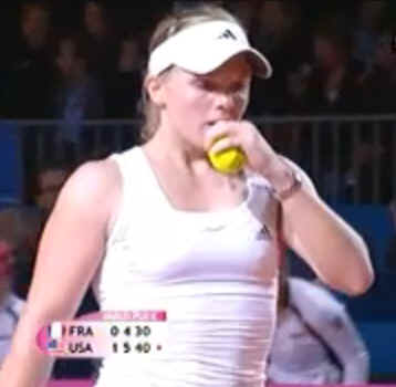 Parmentier 6-4, 64 in the second rubber match of the day. In the first match of the day Bethanie Mattek-Sands won her first ever singles win in Fed Cup play over Alize Cornet 76(7) 75. Melanie served no ace but did 4 df and did 13 winners and 24 ue. As for Pauline she did 9 aces and 2 df and 8 winners and 21 eu. |